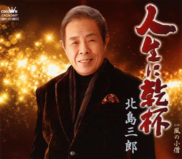 2015年秋の愛馬キタサンブラックによるクラシック制覇も話題を集め、まさに“乾杯”であけくれた日々であったろう北島三郎。芸道55周年の幕開けとなるシングルで、その歩みを本格演歌スタイルで朗々と歌いあげる。表題曲は作曲を、カップリング曲は詞・曲ともに原 譲二名義によるもの。